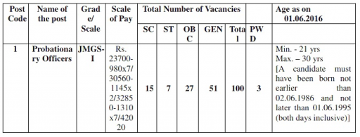 Age:  Minimum age – 21 years & Maximum age – 30 yrs as on 01.06.2016  (Date inclusive)