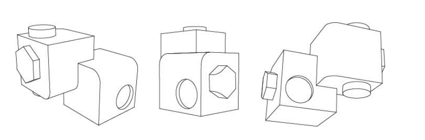 Q.1} Shown below are three perspective views of a solid object. How many surfaces does the object have? Assume hidden surfaces to be flat.