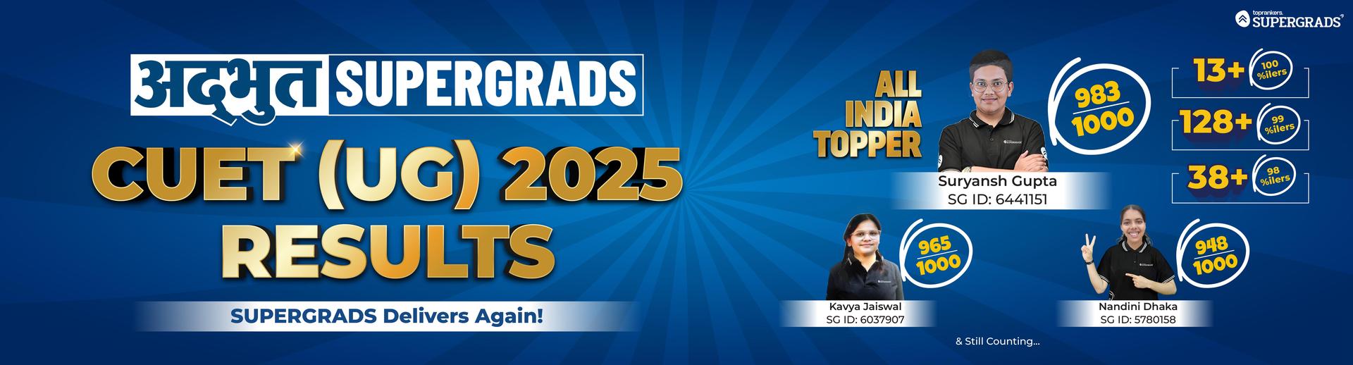 The biggest credit for my score of 983/1000 in the CUET 2025 exam goes to my coaching institute, SuperGrads. The real-time doubt-solving support and constant guidance provided throughout helped me grasp concepts more quickly.The comprehensive study material mirrored the exam pattern and kept me confident throughout my preparation.