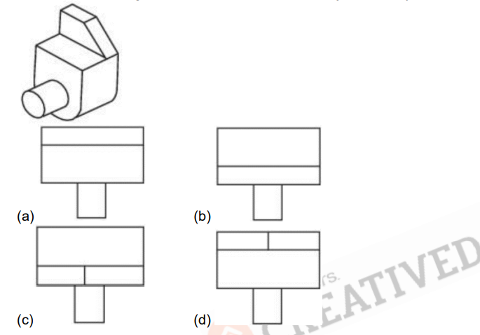 1) In a question figure a 3D object is given. Identify the correct top view of the object amongst the answer figures.