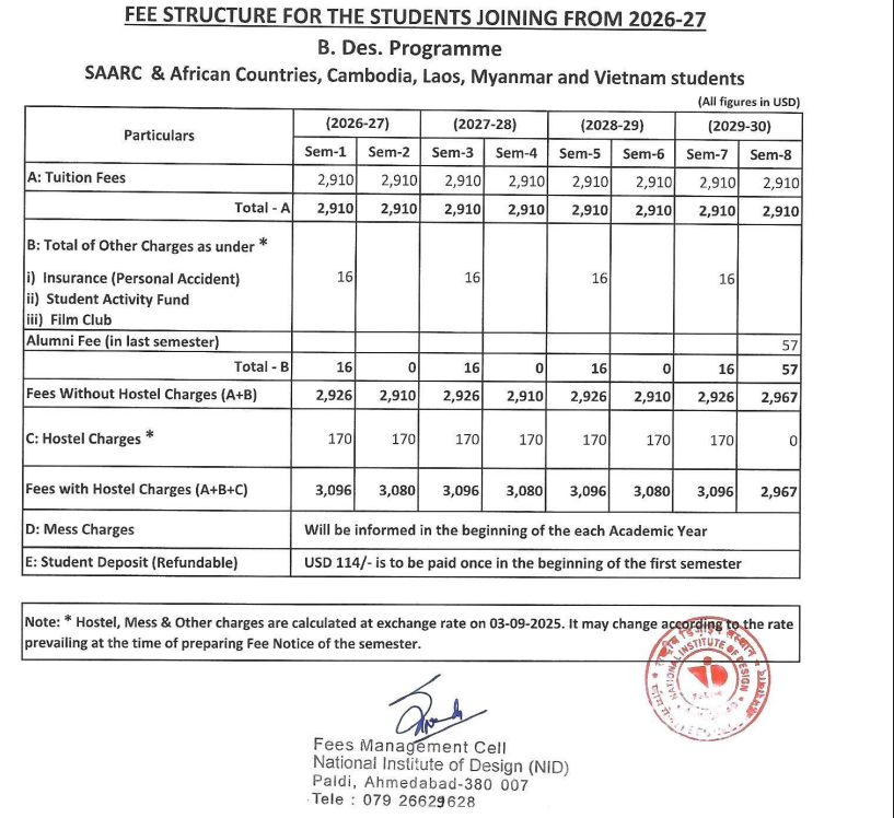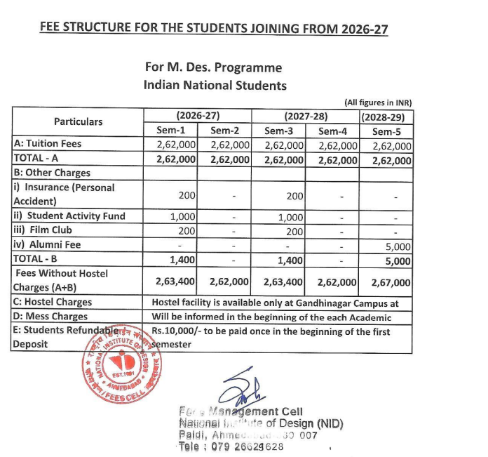Check out the NID fees structure 2026 for both B.Des and M.Des programs.