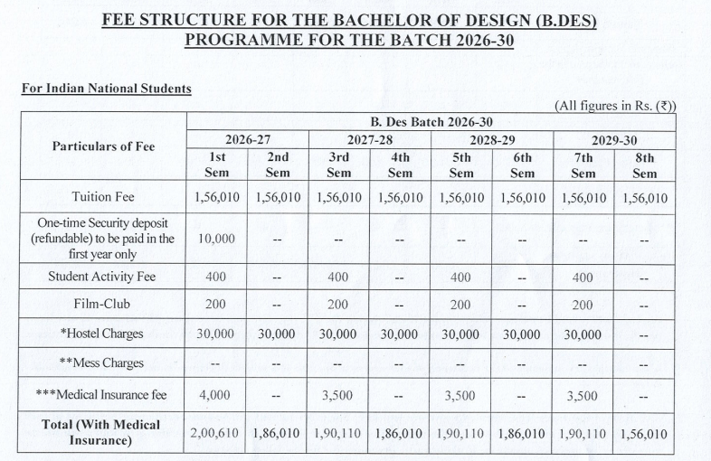 The fee covers everything from tuition to multiple other charges, ensuring students receive a world-class design education.