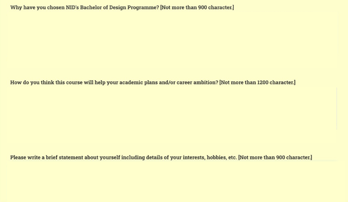5. From this year, you’ll also be required to required to submit quick write ups about your interest in NID.