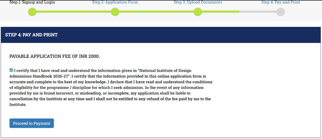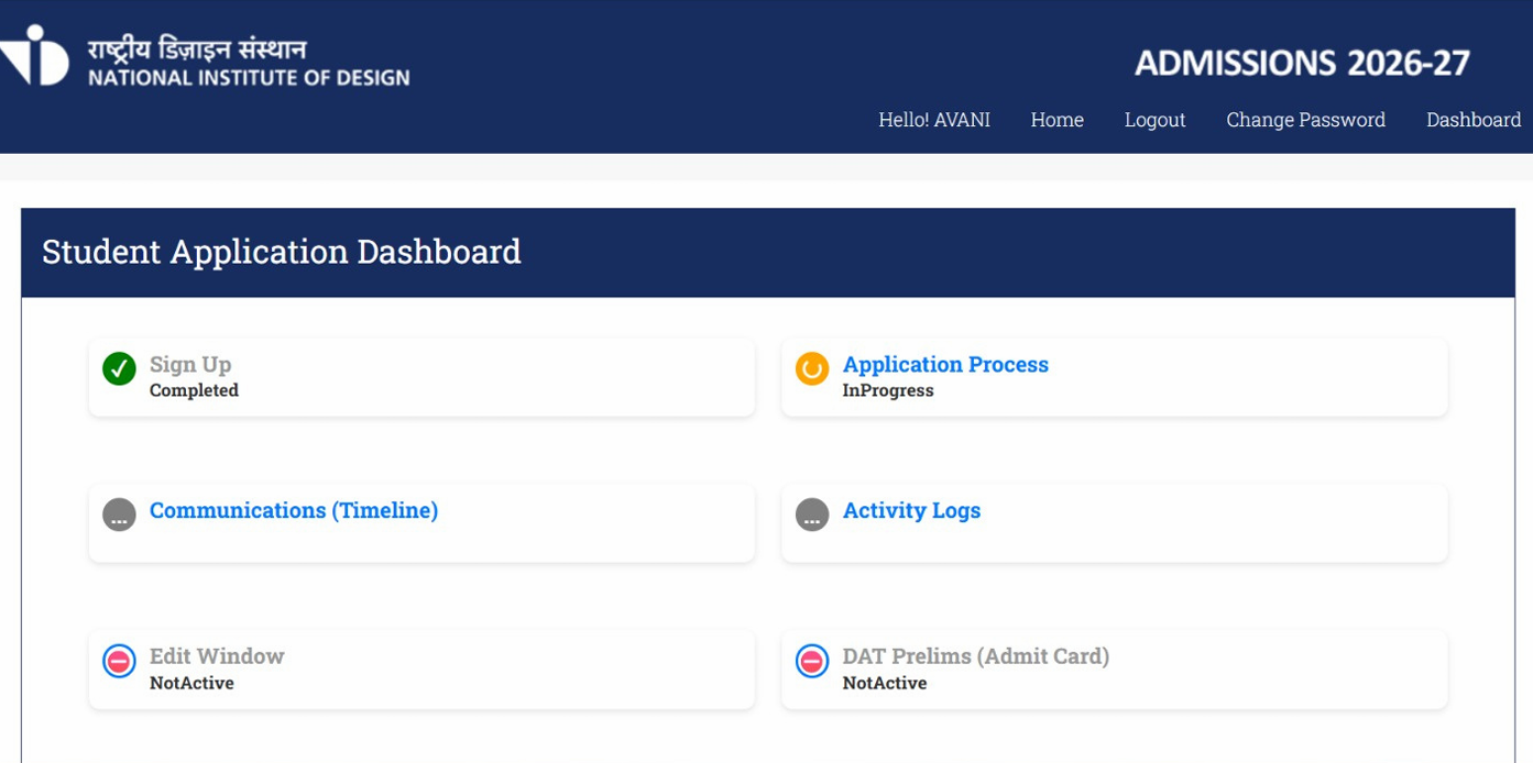 1. After login, you will see the student application dashboard in the application form. NID DAT 2026 registration details on it includes: