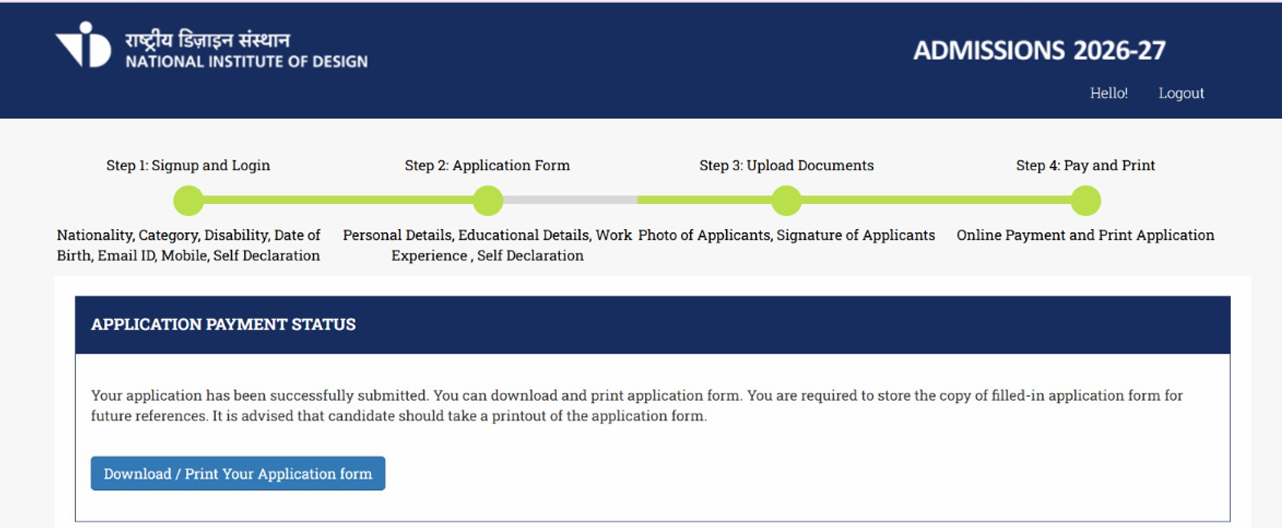 After submission, also take physical printouts of the confirmation page for record, as you might need it during admit card download, studio test/interview round, or final admission & verification round.