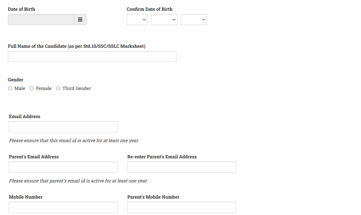 Use exact spelling as per 10th / 12th certificate; cross-check before submit |