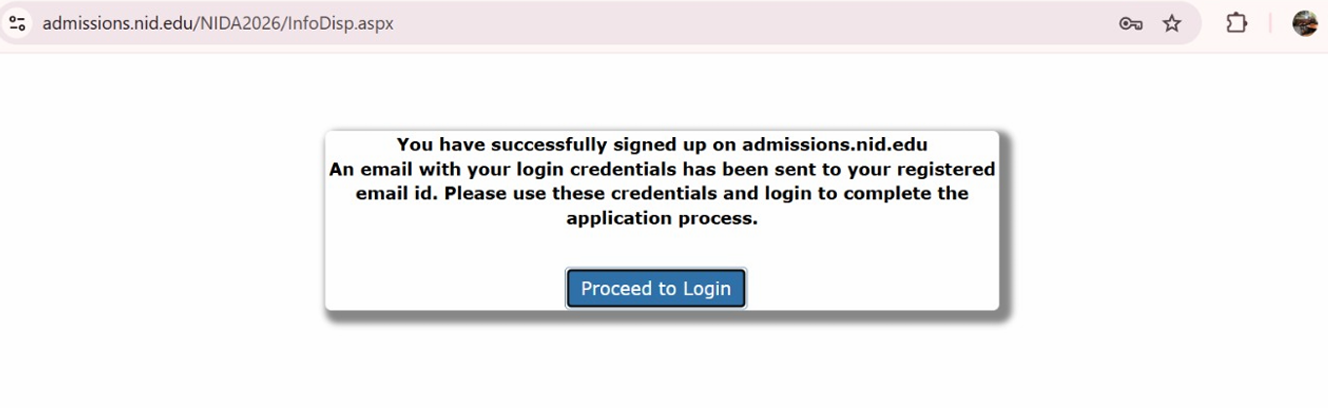 1. Go to admissions.nid.edu. Confirm that URL is correct (look for “admissions.nid.edu” with nid.edu domain).