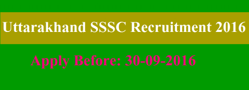 Uttarakhand SSSC Recruitment 2016: Invites Applications for the various post, Apply before 30th september 2016