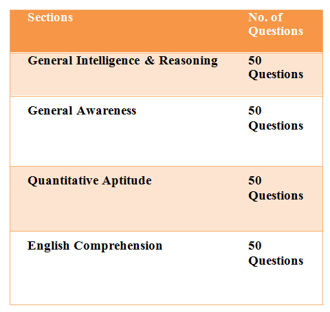 (3)For posts with Graduation in any subject & Graduate/Post Graduate Degree (with specialization in any subject) as the EQ, the Examination will have 200 questions, each carrying one mark, on the following subjects: