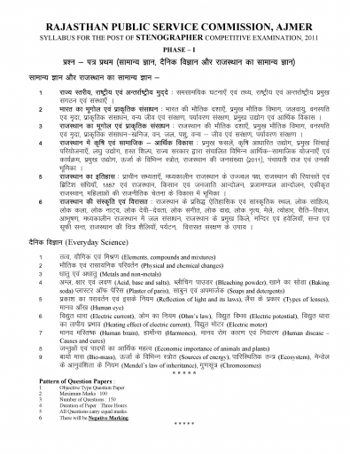 SSC Steno General Awareness Syllabus