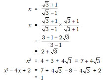 If x = \(\cfrac{\sqrt{3} + 1}{\sqrt{3} - 1}\) , then find the value of x2 – 4x + 2.