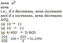 The area of rhombus is termed as \(\cfrac{x^2}{z}\)  . If x is increased by 10% and  z is decreased by 25%. Find the percentage increase in the area of rhombus ?
