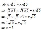 If \(\sqrt{6} \times \sqrt{15} = x\sqrt{10} \) then the vlaue of x is?
