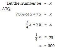 75% of a number when added to 75 is equal to the number. The number is  –