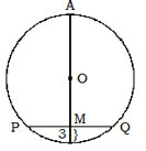 In the given cirlce, chord PQ is 18 cm, long. AB is perpendicular bisector of PQ at M. If MB = 3 cm then the length of AB will be –