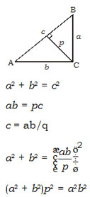 ABC is an right-angled triangle, right angled at C and p is the length of the perpendicular from C on AB. If a, b, c are the sides of the triangle where C is the longest side then which one of the following is correct ?