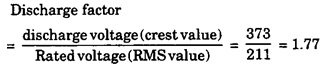 If the discharge voltage of a thyrite arrester is 373 kV rms and the rated voltage is 211 kV rms, the discharge factor of the arrester is