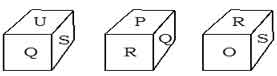 Three positions of a dice is shown below.  Which letter will be opposite to 'O' ?