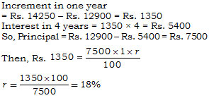 If a sum of money amounts to Rs.12900 and Rs.14250 at the end of 4th year and 5th year respectively at a certain rate of simple interest, then the rate of interest is -
