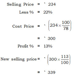 When a man sold his article for ' 234 he made a loss of 22%. For how much he would have sold if he wanted to make a profit of 13% ?