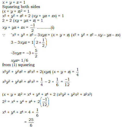 If x + y + z = 1, x2 + y2 + z2 = 2, x3 + y3 + z3 = 3 then find the value of x4 + y4 + z4