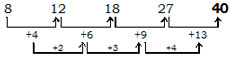 8, 12, 18, 27, ?