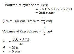 A copper wire whose length and diameter are 72 m and 4 mm respectively, is melted to form a sphere. The radius of the sphere is –