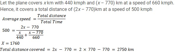 An aeroplane first flew with a speed of 440 km/h and covered a certain distance. It still had to cover 770 km less than what it had already travelled but it flew with a speed of 660 km/h. The average speed for the entire flight was 500 km/hr. Find the total distance covered.