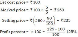 If the cost price of an item is two fifth of its marked price and if it is sold at a discount of 10%, then there will be