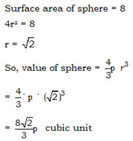 The total surface area of a sphere is 8 square unit . The volume of the sphere is –