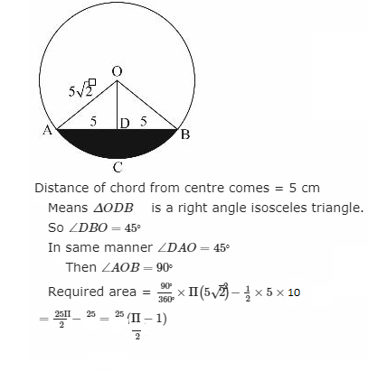A circle of radius 52    has a chord of length 10 cm. Find the area of the smaller segment of circle made by this chord