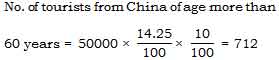 If in the financial year 2001-02, the total number of tourists was 5000, then find the number of tourists of age group more than 60 years from China.