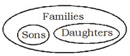 Identify the diagram that best represents the relationship among Families, Sons and Daughters.