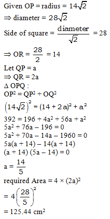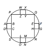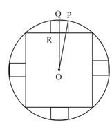 In the given figure, radius of a circle is   cm. PQRS is a square. EFGH, ABCD, WXYZ and LMNO are four identical squares. What is the total area (in cm2) of all the small squares?