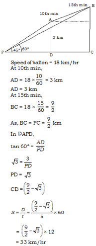 A ballon ascending at the rate of 18 kmph was drifted by wind. Its angle of elevation at 10th and 15th minutes were found to be 60º and 45º respectively. The wind speed (in whole numbers) during the last five minutes is equal to –