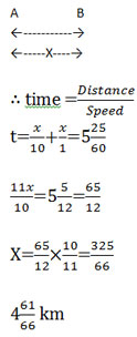 I started on my bicycle at 7 a.m. to reach a certain place. After going a certain distance my bicycle went out of order. Consequently I rested for 35 minutes and came back to my house walking all the way. I reached my home at 1 p.m. If my cycling speed is 10 km/hr and my walking speed is 1 km/hr, then how much distance is  covered by me on my bicycle?