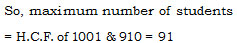The maximum number of students among whom 1001 pens and 910 pencils can be distributed in such a way that each student gets same number of pens and same number of pencils, is –