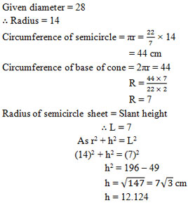 A semicircular sheet of paper of diameter 28 cm is bent to cover the exterior surface of an open conical ice-cream cup. Find the depth of the ice-cream cup.