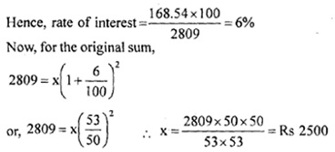 Now, we see that Rs.168.54 is the interest on Rs.2809 in one year (it is either simple or compound interest because both are the same for a year)