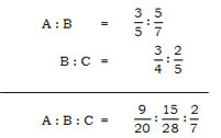 A:B:C = 9/20 : 15:28 : 10/35