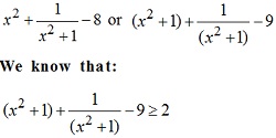 The minimum value of x2 + \(\cfrac{1}{x^2+1}-8\) is: