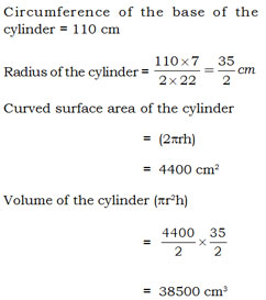 The curved surface area of a cylinder is 4400 cm2 and its circumference of the base is 110 cm. Find the volume of cylinder.
