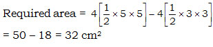 Req, area = 4( 1/2 * 5 * 5) - 4( 1/2 * 3 * 3)