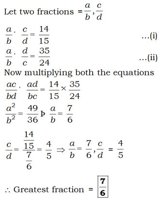 The product of two fractions is \(\cfrac{14}{15}\) and their ratio is \(\cfrac{35}{24}\) The greater fraction is–