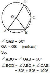 In the given figure, O is the centre of a circle and \(\angle \)OAB = 50°, then value of \(\angle \)BOD is: