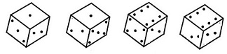 Ans: (d) There are respectively one, three,  five and six dots on faces adjacent to the face having two dots. So, four dots lies on the face opposite to the two dots. Therefore, six dots are on the face opposite to one dot.