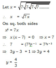 If \(\sqrt[]{7\sqrt[]{7\sqrt[]{7\sqrt[]{7}}}}\)      = (343)y –1, then value of y is –