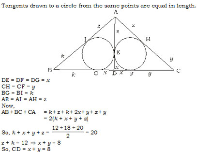 Side of a triangle ABC are AB = 12, BC = 18 and AC = 10. There is a point D on BC such that both incircles of triangles ABD and ACD touch AD at a common point E. Length of CD is -