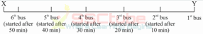 Now six more buses will starts when 1st bus taking is journey from y to x.