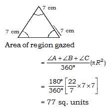 Three horses are tethered at 3 corner of a triangular plot of land having sides 20m, 30m and 40 m each with a rope of length 7 m. The area (in m2) of the region of this plot, which can be grazed by the horses, is (Use  π=227   )
